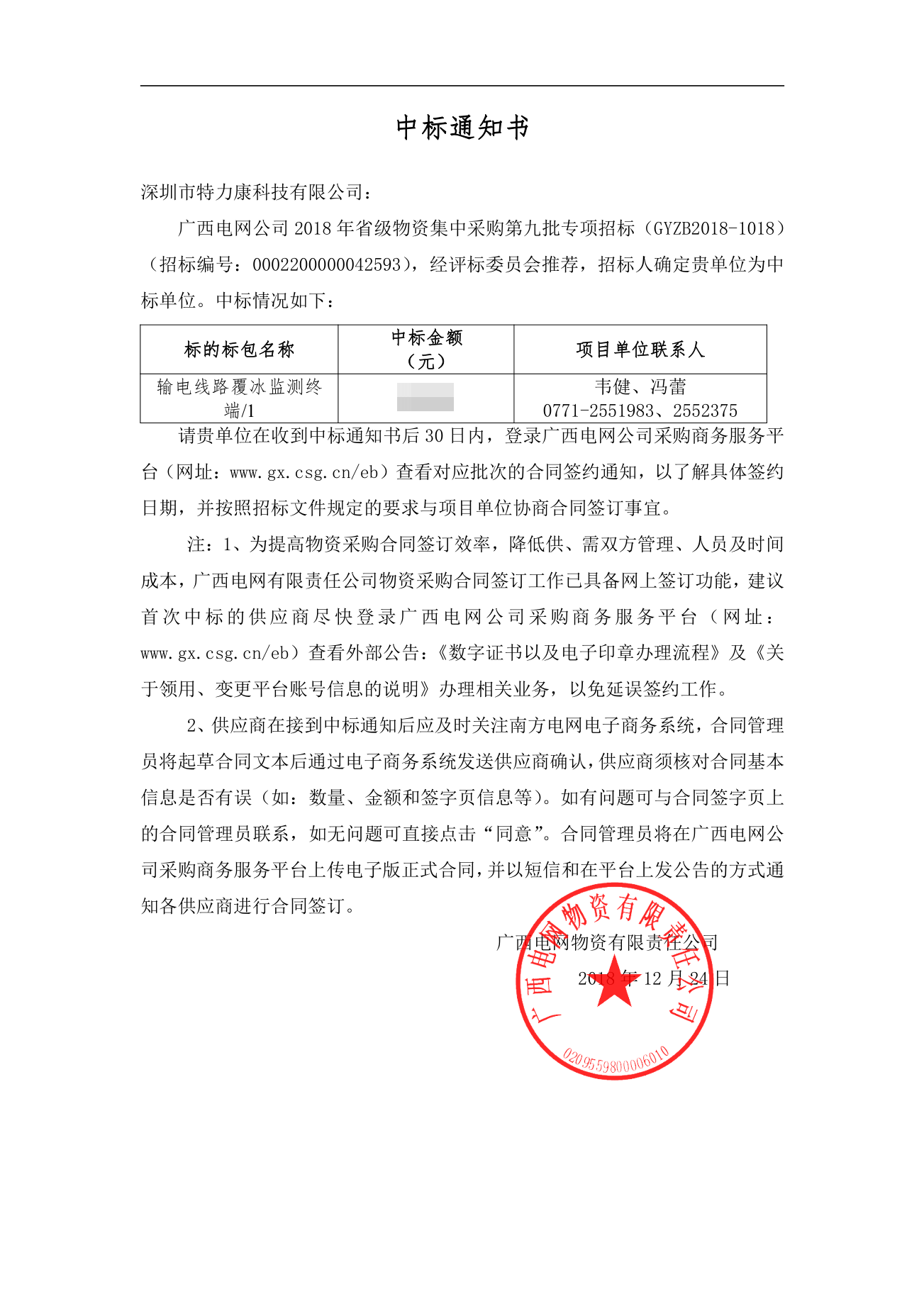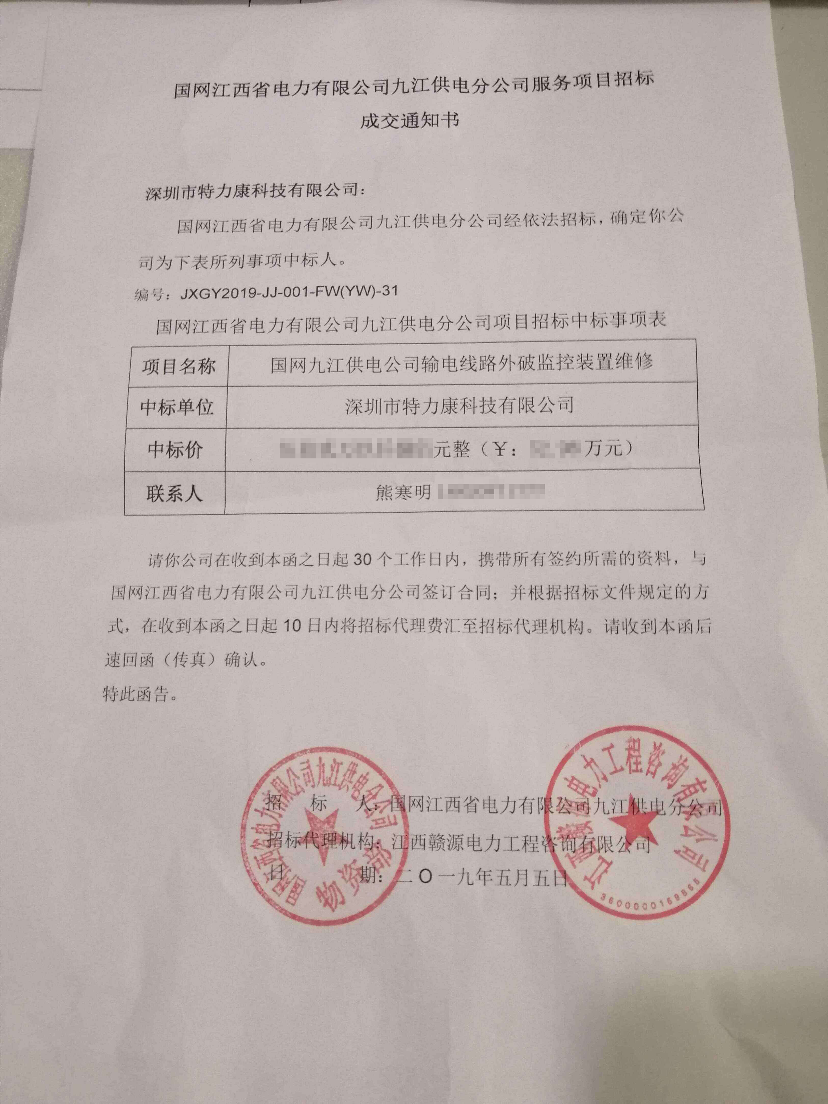 特力康中標(biāo)國網(wǎng)黑龍江送變電工程公司的2024年度第18次物資類競爭性談判采購項目——慶陽驅(qū)鳥器物資框 特力康中標(biāo)國網(wǎng)甘肅省電力公司省管產(chǎn)業(yè)單位2024年第五次物資競爭性談判授權(quán)采購項目 中標(biāo)喜訊:深圳市特力康科技有限公司成功入圍許繼集團(tuán)綜合能源公司輸電線路視頻在線監(jiān)測裝置模塊集采項目 中標(biāo)喜訊:特力康成功中標(biāo)國網(wǎng)重慶市電力公司渝中一片區(qū)項目 特力康成功中標(biāo)國網(wǎng)天津市電力公司2024年第二次?物?資招標(biāo)項目 特力康中標(biāo)國網(wǎng)安徽省電力有限公司蕪湖供電公司2024年3月非物質(zhì)采購項目 破解采空區(qū)隱患:山西電力裝特力康通用型監(jiān)測裝置,守鐵塔穩(wěn)運(yùn)行 四川電力用特力康架空輸電線路山火監(jiān)測裝置,筑牢林區(qū)輸電 “防火墻”? 遼寧電力啟用特力康多視角監(jiān)拍裝置,全維度守護(hù)輸電安全? 破解黃土高原沉降難題:山西電力用特力康北斗裝置守桿塔安全? 山東電力啟用特力康動態(tài)版智能激光驅(qū)鳥器,動態(tài)防控守護(hù)變電站安全? 湖南超高壓電力啟用特力康球機(jī) AI 監(jiān)測裝置,智能守護(hù)輸電通道安全? 廣西電力啟用特力康高壓電纜護(hù)層環(huán)流監(jiān)控設(shè)備,筑牢電纜安全防線? 寧夏配電線路安裝了我司防外破電子化智能警示牌