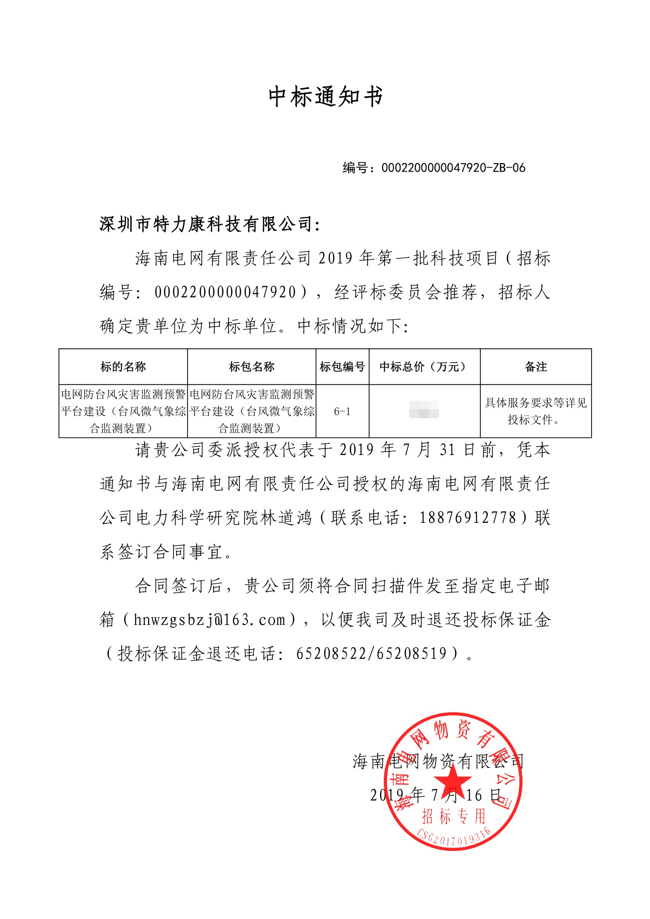 南方電網(wǎng)海南電網(wǎng)有限責(zé)任公司2019年第一批科技項(xiàng)目評審工作已結(jié)束,經(jīng)評審委員會推薦,經(jīng)南網(wǎng)海南電網(wǎng)公司招投標(biāo)領(lǐng)導(dǎo)小組批準(zhǔn),確定我司為海南2019年第一批科技項(xiàng)目微氣象綜合監(jiān)測裝置中標(biāo)單位。