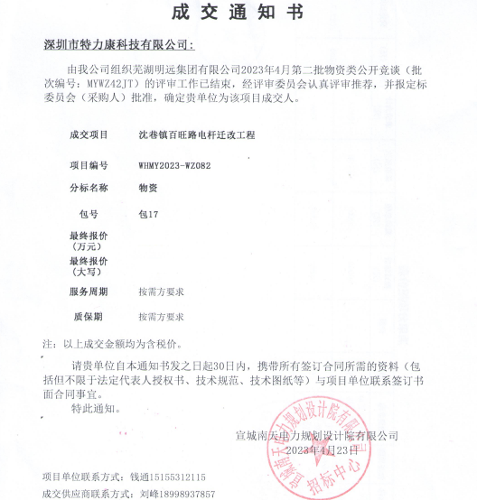特力康中標(biāo)國(guó)網(wǎng)黑龍江送變電工程公司的2024年度第18次物資類(lèi)競(jìng)爭(zhēng)性談判采購(gòu)項(xiàng)目——慶陽(yáng)驅(qū)鳥(niǎo)器物資框 特力康中標(biāo)國(guó)網(wǎng)甘肅省電力公司省管產(chǎn)業(yè)單位2024年第五次物資競(jìng)爭(zhēng)性談判授權(quán)采購(gòu)項(xiàng)目 中標(biāo)喜訊:深圳市特力康科技有限公司成功入圍許繼集團(tuán)綜合能源公司輸電線路視頻在線監(jiān)測(cè)裝置模塊集采項(xiàng)目 中標(biāo)喜訊:特力康成功中標(biāo)國(guó)網(wǎng)重慶市電力公司渝中一片區(qū)項(xiàng)目 特力康成功中標(biāo)國(guó)網(wǎng)天津市電力公司2024年第二次?物?資招標(biāo)項(xiàng)目 特力康中標(biāo)國(guó)網(wǎng)安徽省電力有限公司蕪湖供電公司2024年3月非物質(zhì)采購(gòu)項(xiàng)目 破解采空區(qū)隱患:山西電力裝特力康通用型監(jiān)測(cè)裝置,守鐵塔穩(wěn)運(yùn)行 四川電力用特力康架空輸電線路山火監(jiān)測(cè)裝置,筑牢林區(qū)輸電 “防火墻”? 遼寧電力啟用特力康多視角監(jiān)拍裝置,全維度守護(hù)輸電安全? 破解黃土高原沉降難題:山西電力用特力康北斗裝置守桿塔安全? 山東電力啟用特力康動(dòng)態(tài)版智能激光驅(qū)鳥(niǎo)器,動(dòng)態(tài)防控守護(hù)變電站安全? 湖南超高壓電力啟用特力康球機(jī) AI 監(jiān)測(cè)裝置,智能守護(hù)輸電通道安全? 廣西電力啟用特力康高壓電纜護(hù)層環(huán)流監(jiān)控設(shè)備,筑牢電纜安全防線? 寧夏配電線路安裝了我司防外破電子化智能警示牌