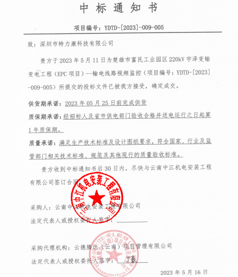 特力康中標(biāo)國(guó)網(wǎng)黑龍江送變電工程公司的2024年度第18次物資類競(jìng)爭(zhēng)性談判采購(gòu)項(xiàng)目——慶陽(yáng)驅(qū)鳥(niǎo)器物資框 特力康中標(biāo)國(guó)網(wǎng)甘肅省電力公司省管產(chǎn)業(yè)單位2024年第五次物資競(jìng)爭(zhēng)性談判授權(quán)采購(gòu)項(xiàng)目 中標(biāo)喜訊:深圳市特力康科技有限公司成功入圍許繼集團(tuán)綜合能源公司輸電線路視頻在線監(jiān)測(cè)裝置模塊集采項(xiàng)目 中標(biāo)喜訊:特力康成功中標(biāo)國(guó)網(wǎng)重慶市電力公司渝中一片區(qū)項(xiàng)目 特力康成功中標(biāo)國(guó)網(wǎng)天津市電力公司2024年第二次?物?資招標(biāo)項(xiàng)目 特力康中標(biāo)國(guó)網(wǎng)安徽省電力有限公司蕪湖供電公司2024年3月非物質(zhì)采購(gòu)項(xiàng)目 破解采空區(qū)隱患:山西電力裝特力康通用型監(jiān)測(cè)裝置,守鐵塔穩(wěn)運(yùn)行 四川電力用特力康架空輸電線路山火監(jiān)測(cè)裝置,筑牢林區(qū)輸電 “防火墻”? 遼寧電力啟用特力康多視角監(jiān)拍裝置,全維度守護(hù)輸電安全? 破解黃土高原沉降難題:山西電力用特力康北斗裝置守桿塔安全? 山東電力啟用特力康動(dòng)態(tài)版智能激光驅(qū)鳥(niǎo)器,動(dòng)態(tài)防控守護(hù)變電站安全? 湖南超高壓電力啟用特力康球機(jī) AI 監(jiān)測(cè)裝置,智能守護(hù)輸電通道安全? 廣西電力啟用特力康高壓電纜護(hù)層環(huán)流監(jiān)控設(shè)備,筑牢電纜安全防線? 寧夏配電線路安裝了我司防外破電子化智能警示牌